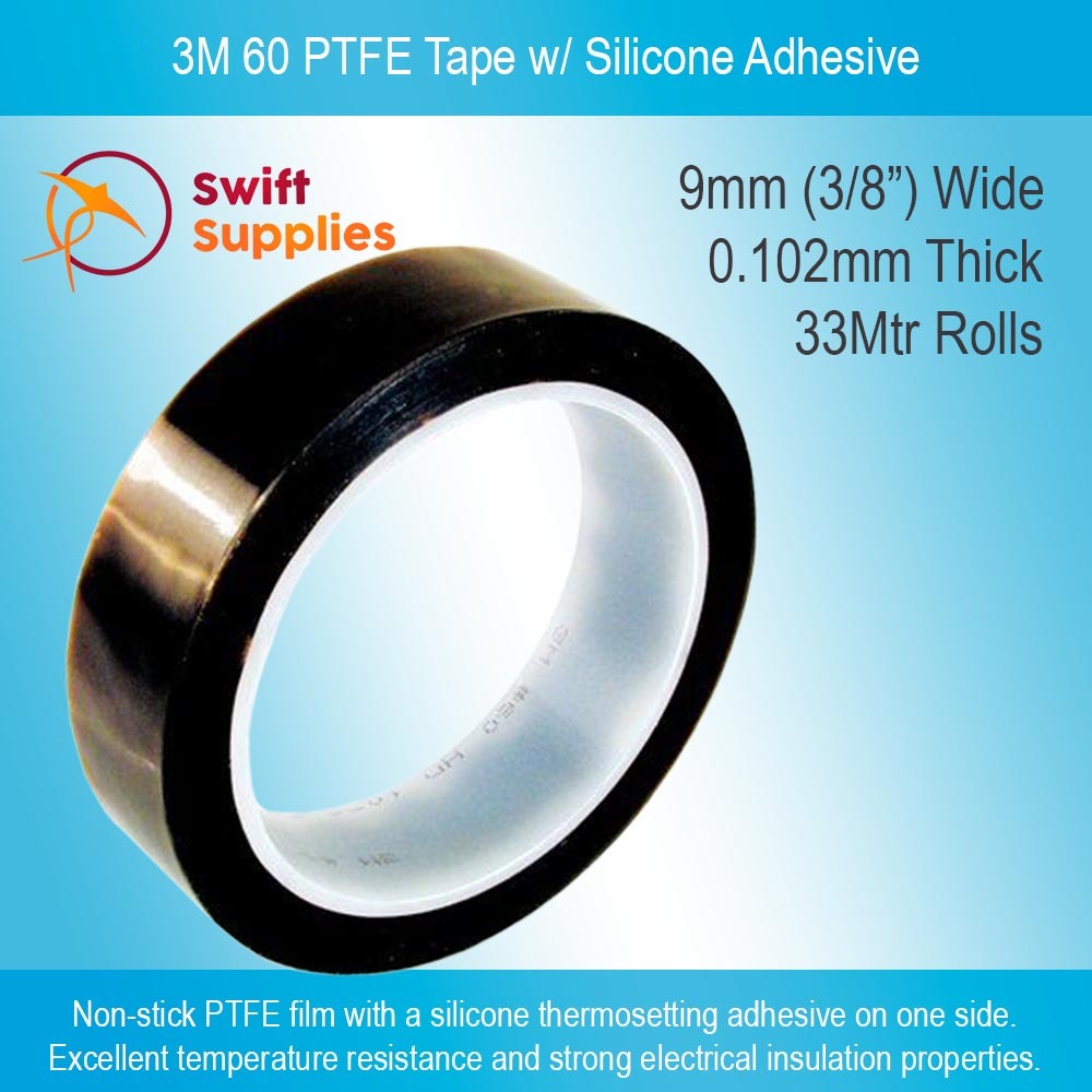 3M 60 PTFE Tape with Silicone Adhesive - 9mm Wide x 33 Metres Long