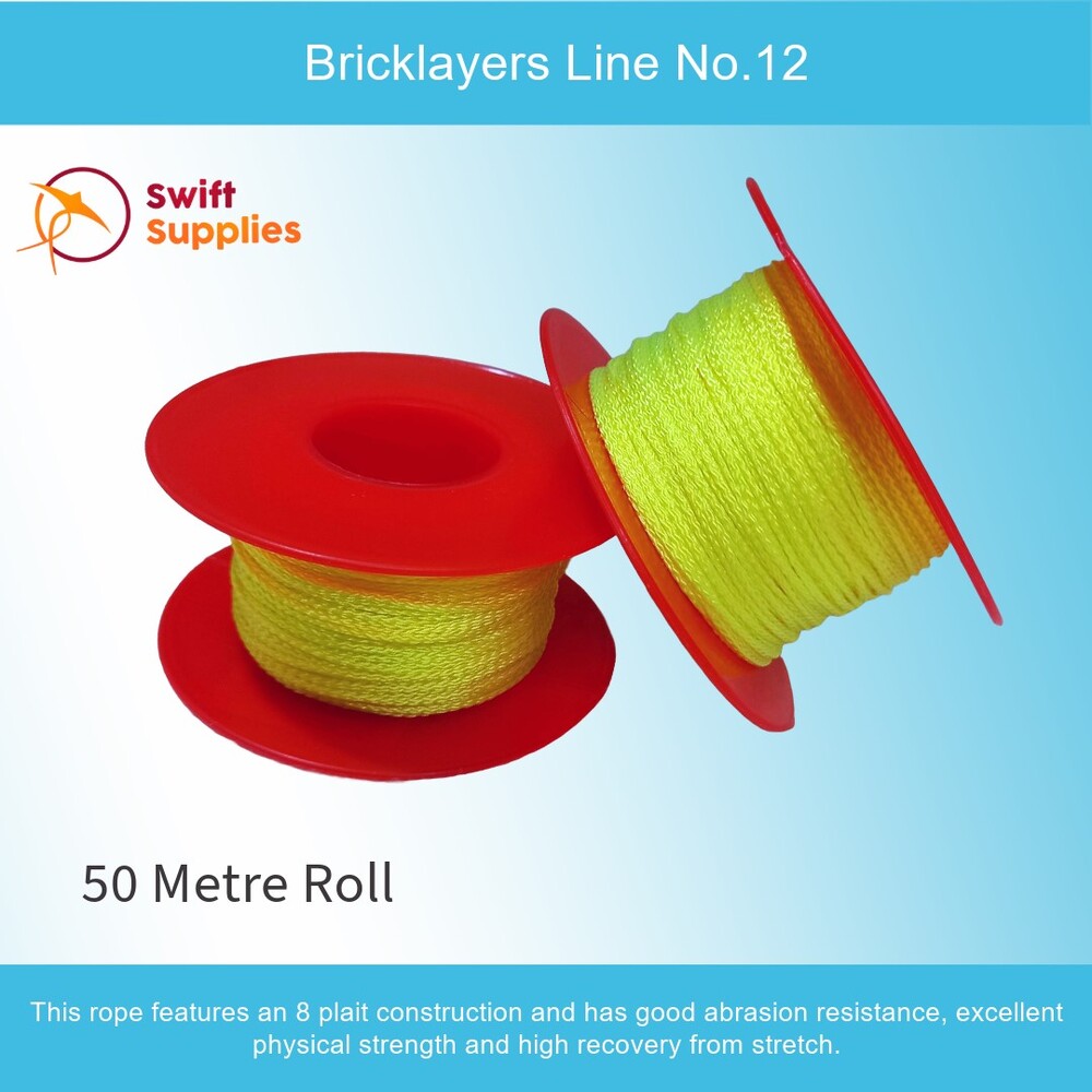 Our Lime Nylon Bricklayers Line No. 12 is a strong, versatile and lasting type of brickies string. This rope features an 8 plait construction and has good abrasion resistance, excellent physical strength and high recovery from stretch.