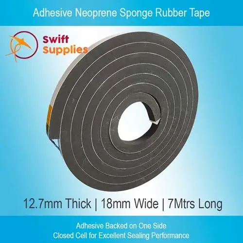 Adhesive Sponge Rubber Neoprene Tape 12.7mm x 24mm x 7 Metres (#6112)