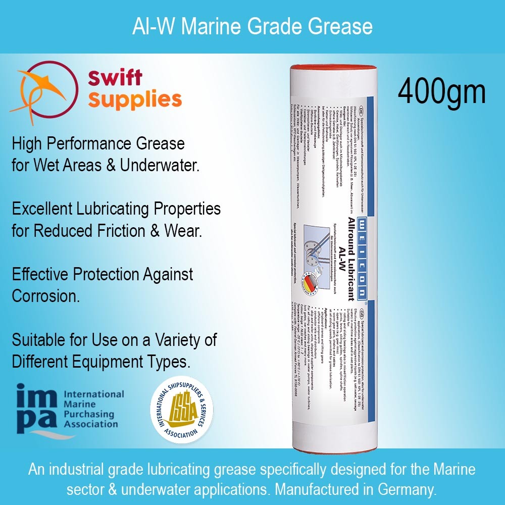 Our AL-W Underwater Marine Grease is a high quality, industrial grade lubricant designed specifically for wet areas or use on submerged parts. Manufactured by Weicon in Germany, this grease is used all around the world to reduce friction, ease operation and protect parts from corrosion.