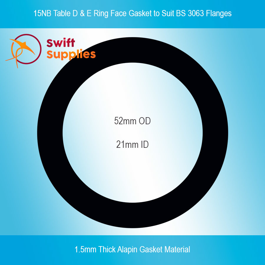 15NB Table D & E Ring Face Flange Gasket, 1.5mm Alapin