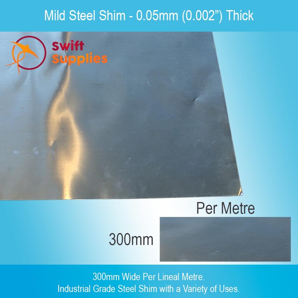 Mild Steel Shim 0.05mm (0.002") Thick x 300mm Wide (Per Metre)