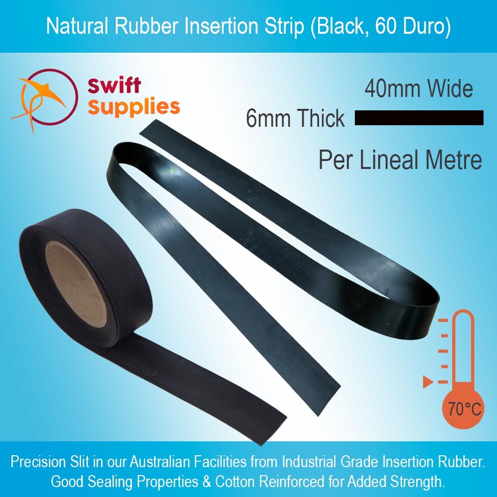 Natural Rubber Insertion Strip 6mm Thick x 40mm Wide (Per Metre)
