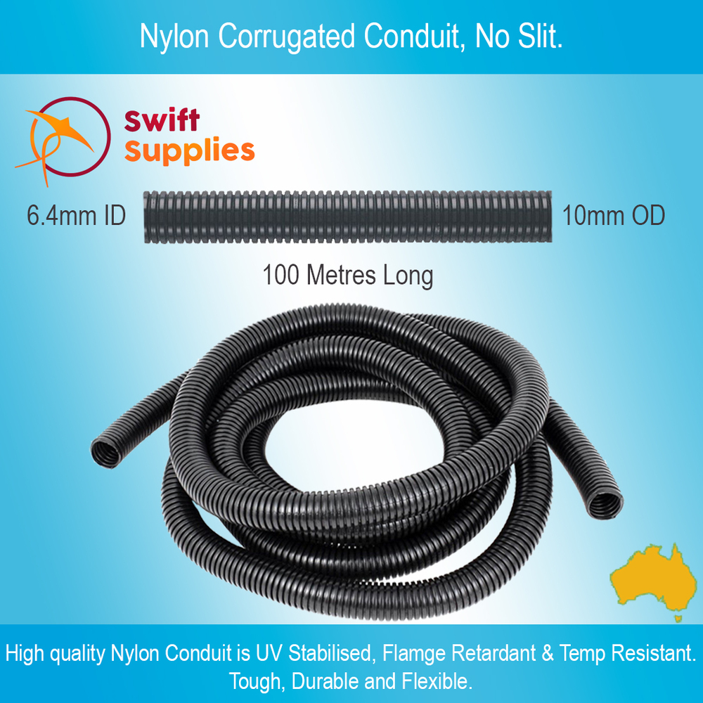 Nylon Corrugated Conduit - 6.4mm ID x 10mm OD x 100 Metres Long