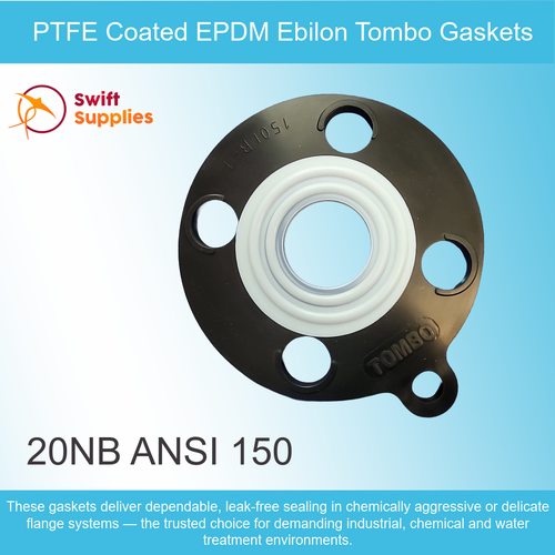 Ebilon™ PTFE Coated EPDM Gaskets combine the chemical resistance of PTFE with the flexibility and resilience of EPDM rubber. Designed for reliable sealing on ANSI 150 flanges, these gaskets offer superior performance in corrosive or low-load applications where conventional rubber or solid PTFE gaskets fall short.