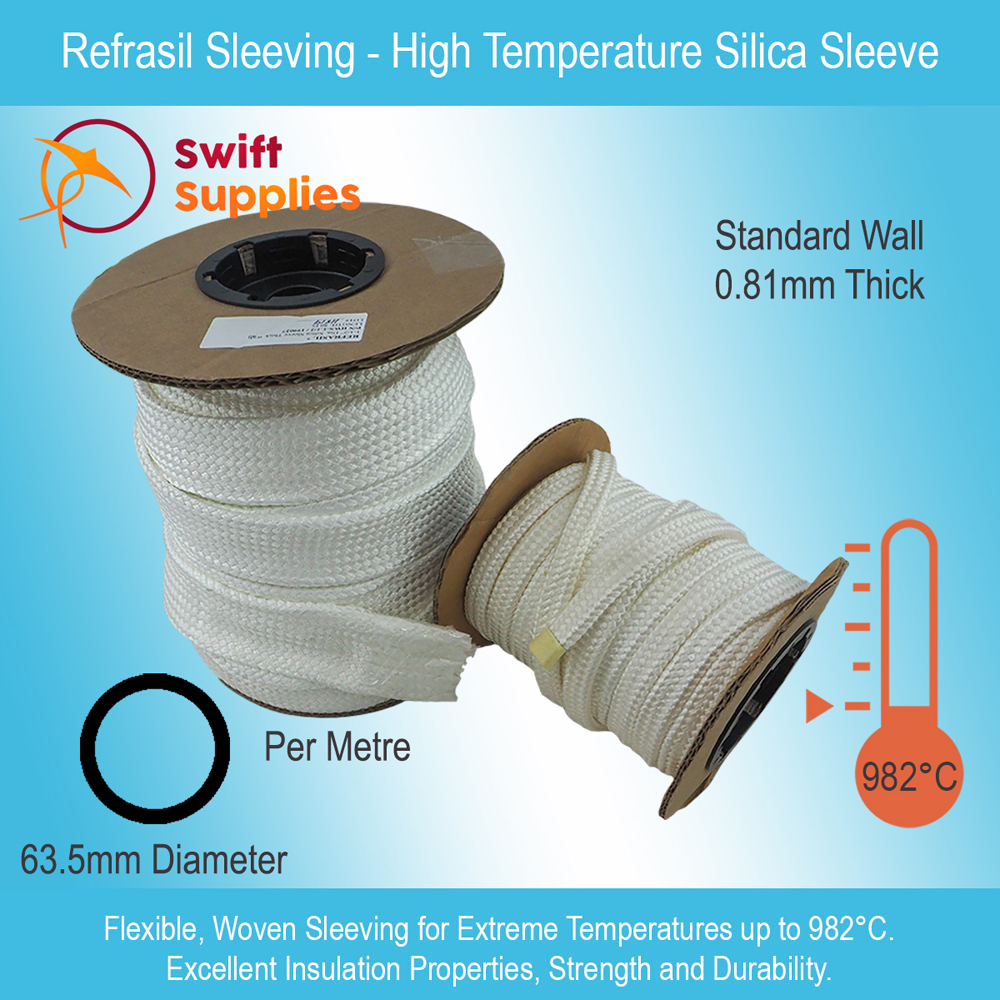 Refrasil Silica Sleeving - 63.5mm ID, Standard Wall (0.81mm), Per Metre