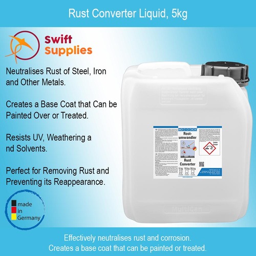 Rust Converter is a specially engineered liquid that neutralises rust on metal objects and surfaces. It is brushed directly onto the rusted part where it forms a metallic-organic iron complex layer that will be black in colour.