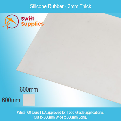 Silicone Rubber Pre-Cut Mat (White, FDA) 3mm x 600mm Square (60 Duro)