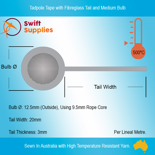 Tadpole Tape - Fibreglass, Medium - 12.5mm Ø Bulb, 20mm Wide, 3mm Thick (Per Metre)