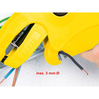 In the handle is an integrated side cutter. Ideal for quickly cutting off parts of cable without having to grab another tool, this side cutter can be used on cables up to 3mm in diameter (1/8” Ø).
