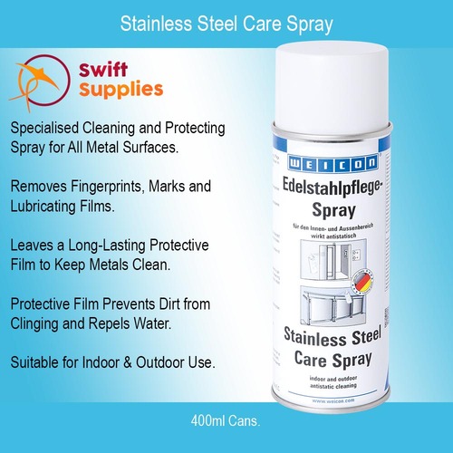 Manufactured in Germany, Weicon Stainless Steel Care Spray is ideal for use in kitchens, bathrooms, around BBQs and boats and anywhere else that Stainless Steel needs to be polished, cleaned and protected. It can be used indoors and outdoors and is extremely long lasting.